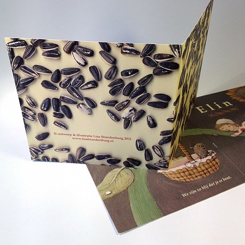 Exclusief ontwerp geboortekaartje t.g.v. de geboorte van Elin, augustus 2011